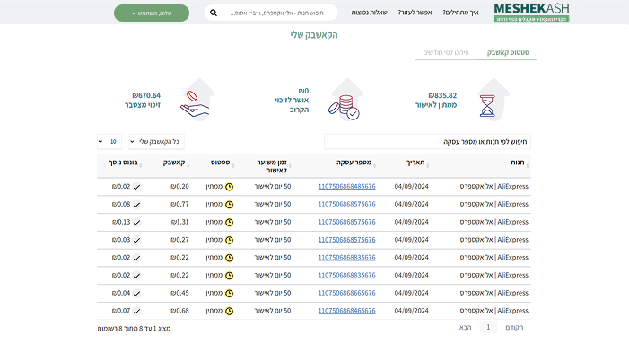 בעמוד "הקאשבק שלי" ניתן לראות: